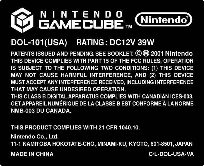 Nintendo GameCube Console Model Label