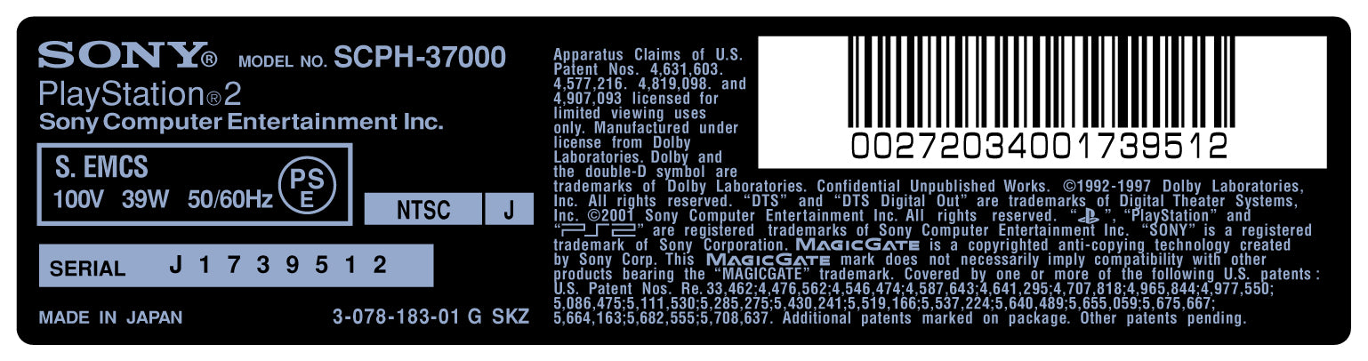 PlayStation 2 Console Model Label [SCPH-37000]
