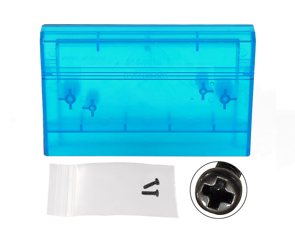 These are brand new Sega Master System cartridge shells in the color transparent blue with the Sega logo on them. They come with the two screws used to hold the cartridge together.