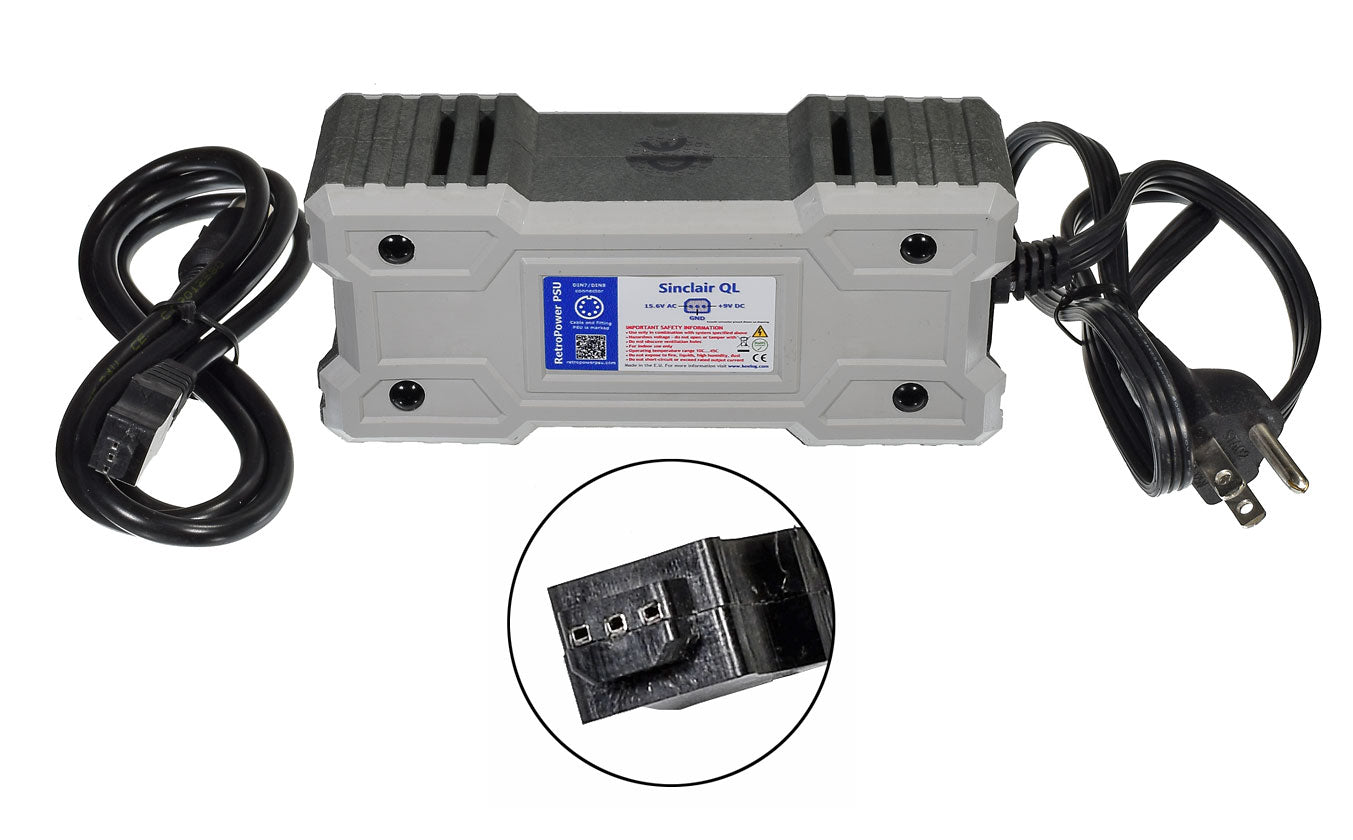 RetroPower PSU Sinclair QL US - Replacement Sinclair QL Power Supply, US Plug